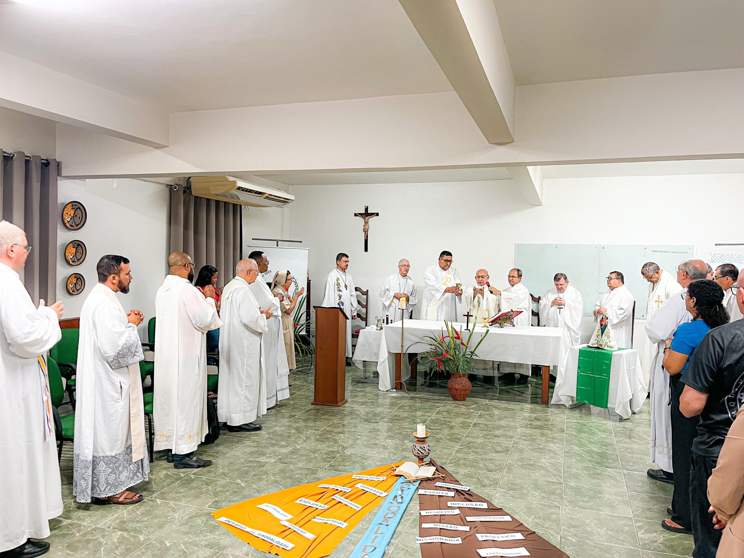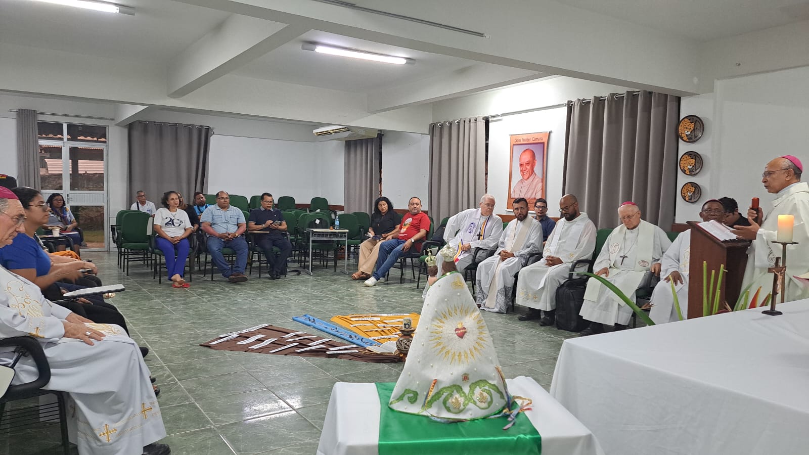 ¨A realização da Assembleia do Regional Norte 2, foi um momento muito importante de colegialidade e de caminharmos juntos em comunhão, participação e visão. Nós contamos com a assessoria do Fernando, do Regional Sul 1 da CNBB, que nos falou sobre o tema da sinodalidade. No fez refletir como é que podemos ser mais sinodais, ou seja, caminhar juntos em comunhão, participação e missão. Nós estamos vivendo um tempo importante da Igreja que é a escuta, o diálogo e a comunhão. Isso é muito importante. E a pergunta é como superar aquilo que impede a sinodalidade? Como? Como que vamos superar tudo isso e contar com a presença do Espírito Santo através da escuta, do diálogo, do discernimento? Em nosso regional, foi um momento muito bonito, porque os representantes das dioceses, contribuíram com os seus testemunhos, para que possamos fazer da Igreja do Regional Norte 2 uma Igreja presente junto ao povo da Amazônia, junto aos ribeirinhos, aos indígenas, aos quilombolas e a todo o nosso povo de Deus, das cidades e também do interior, para que assim possamos fazer crescer o amor de Deus”, finalizou o presidente do Regional Norte 2 da CNBB, e Arcebispo Metropolitano de Santarém, Dom Irineu Roman.