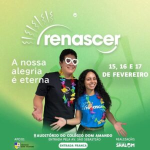 Na Arquidiocese de Santarém, a Comunidade Católica Shalom promove o Renascer, tradicional retiro de Carnaval aberto ao público. O evento acontece nos dias 15, 16 e 17 de fevereiro, no Colégio Dom Amando (entrada pela Av. São Sebastião). A programação inicia pela manhã, às 8h, e no período da tarde, às 14h. A entrada é gratuita.