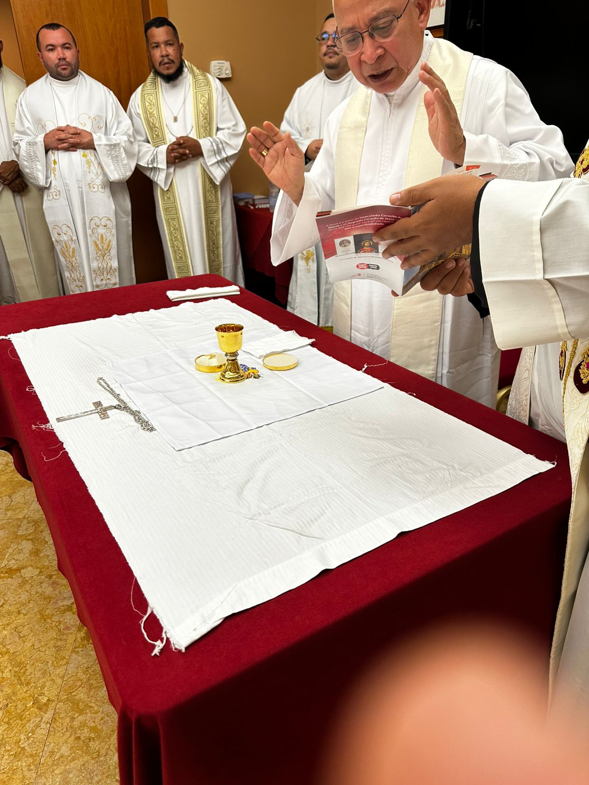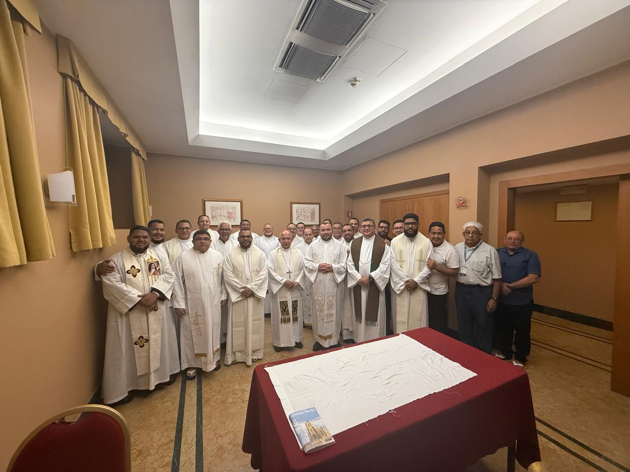 Sacerdotes representantes da Diocese de Abaetetuba, da Diocese de Castanhal, e padre Raimundo Nonato Pantoja Corrêa, Pároco da Paróquia São Sebastião em Breu Branco, e padre Silvio Teixeira da Silva, Vigário da Paróquia Nossa Senhora da Conceição em Mocajuba, representantes da Diocese de Cametá.