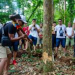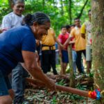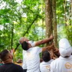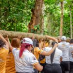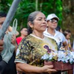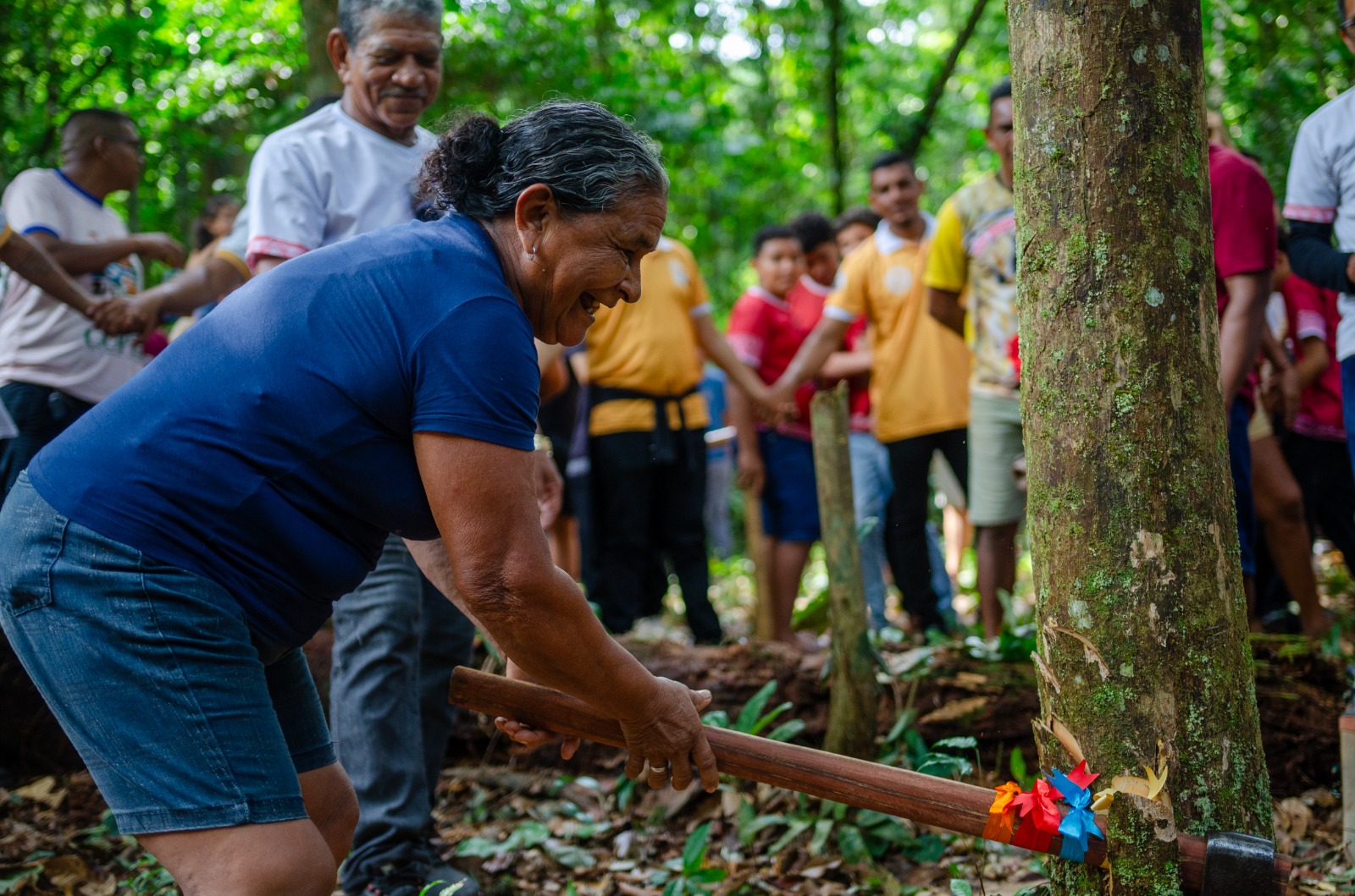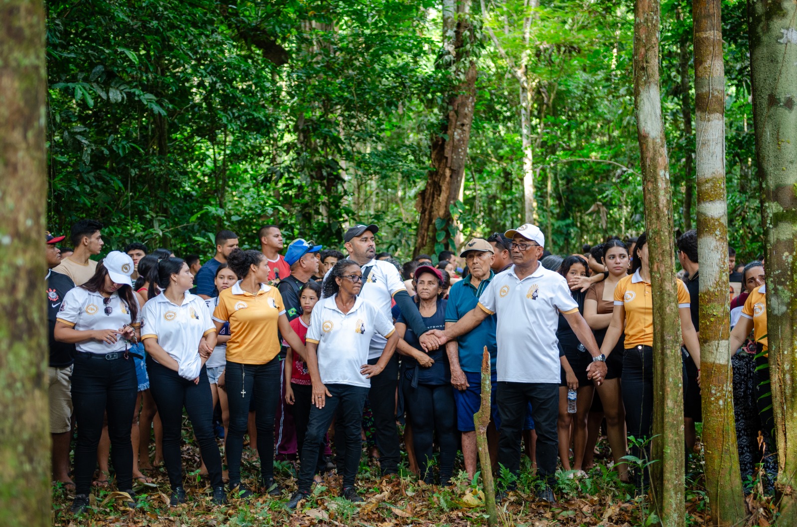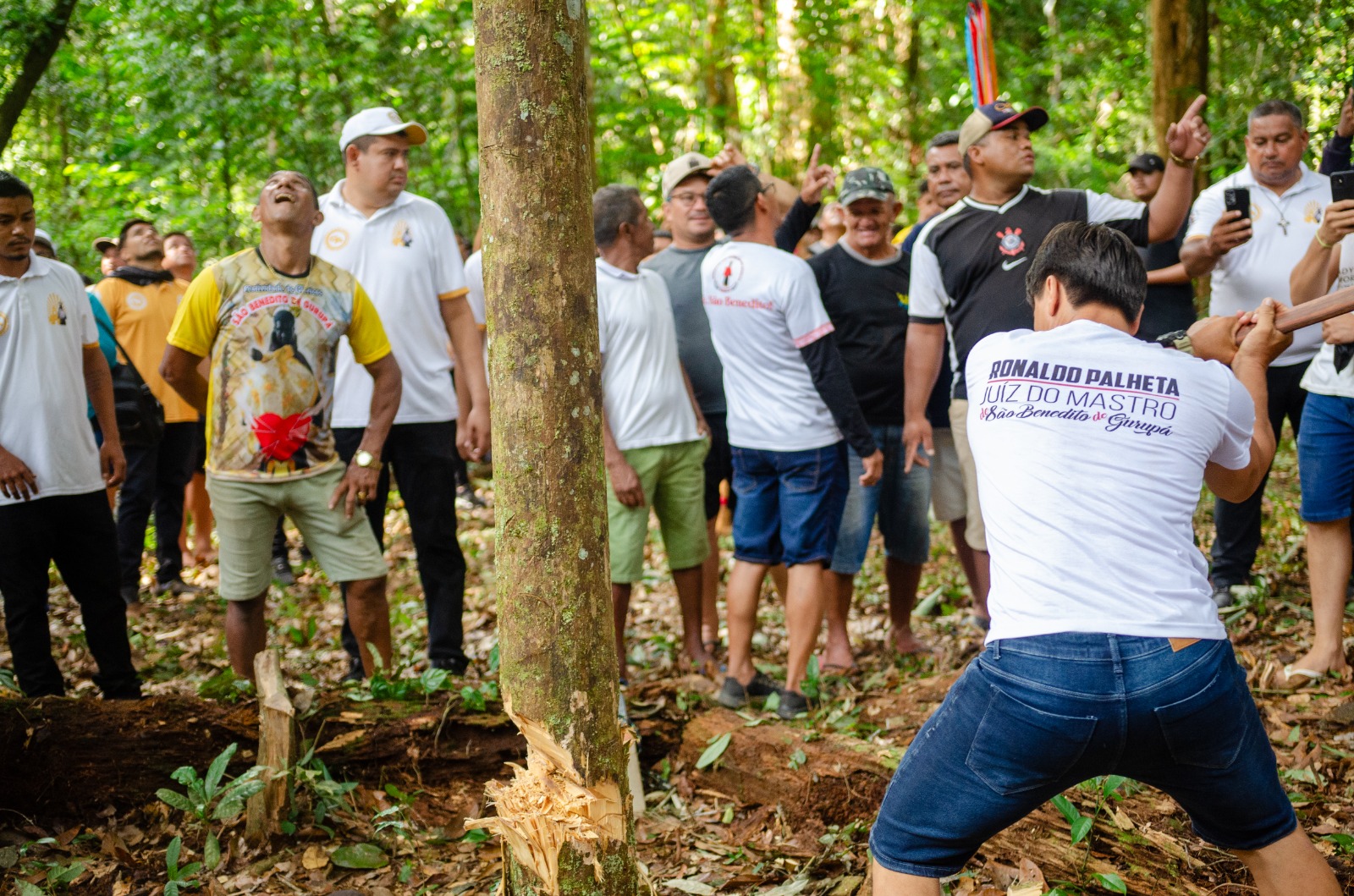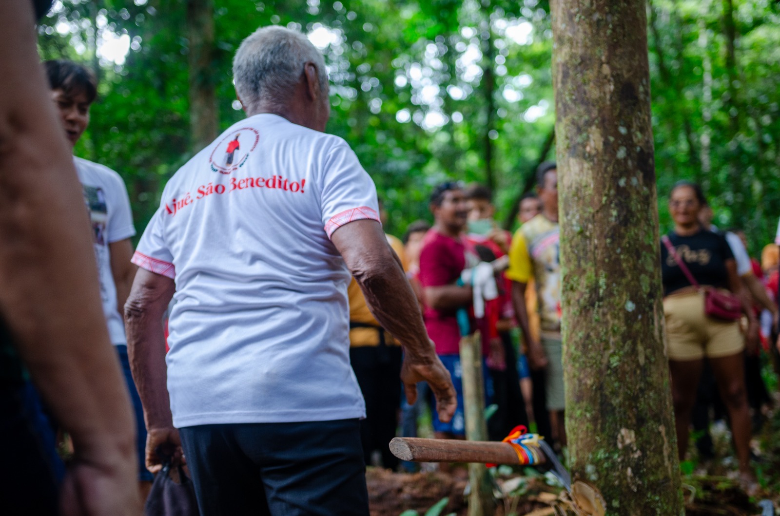 As atividades iniciaram por volta das 8h da manhã, com um café oferecido na casa de um devoto às margens da estrada. Após a mística de abertura, os participantes seguiram rumo ao mato para a retirada da árvore que se tornaria o mastro. No local, os devotos se organizaram em fila e, em um gesto simbólico e coletivo, ajudaram a derrubar a árvore. Já no chão, o mastro foi medido “no pé”, segundo a tradição, e depois transportado até o veículo que o levaria para a comunidade.