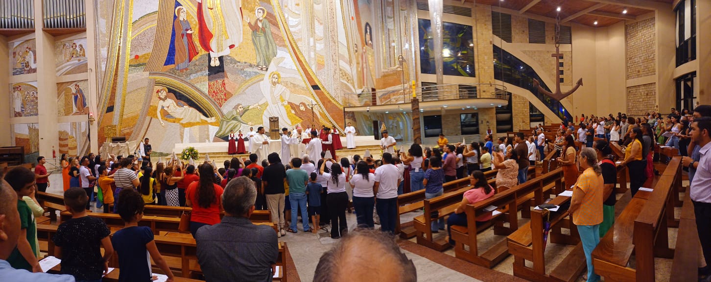 Na noite deste sábado, 30 de agosto, na Catedral Santa Maria Mãe de Deus, em Castanhal, dom Carlos Verzeletti presidiu a Celebração Eucarística de abertura das peregrinações com a imagem de Nossa Senhora de Nazaré, em preparação à Romaria 2025, que traz como tema: “Com Maria, peregrinos de Esperança!”, uma alusão ao Ano Jubilar e os 20 Anos de caminhada pastoral da Igreja de Castanhal.