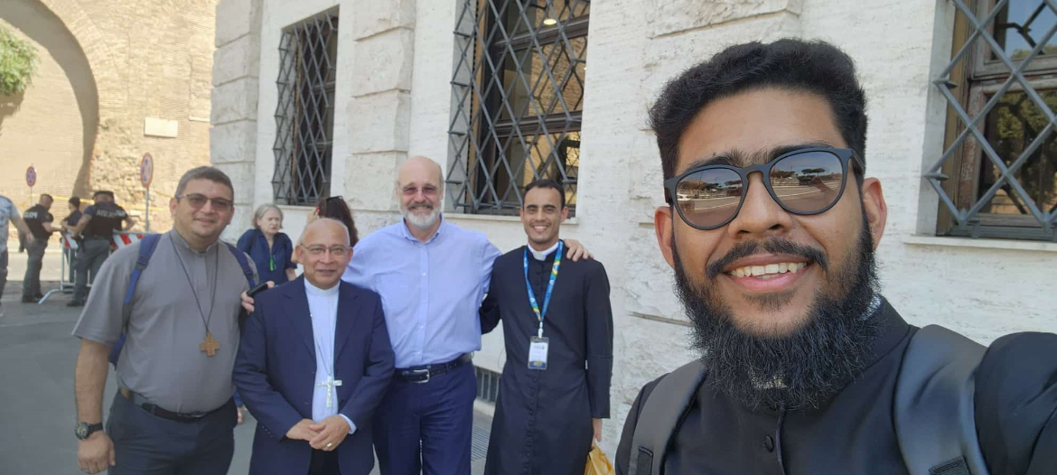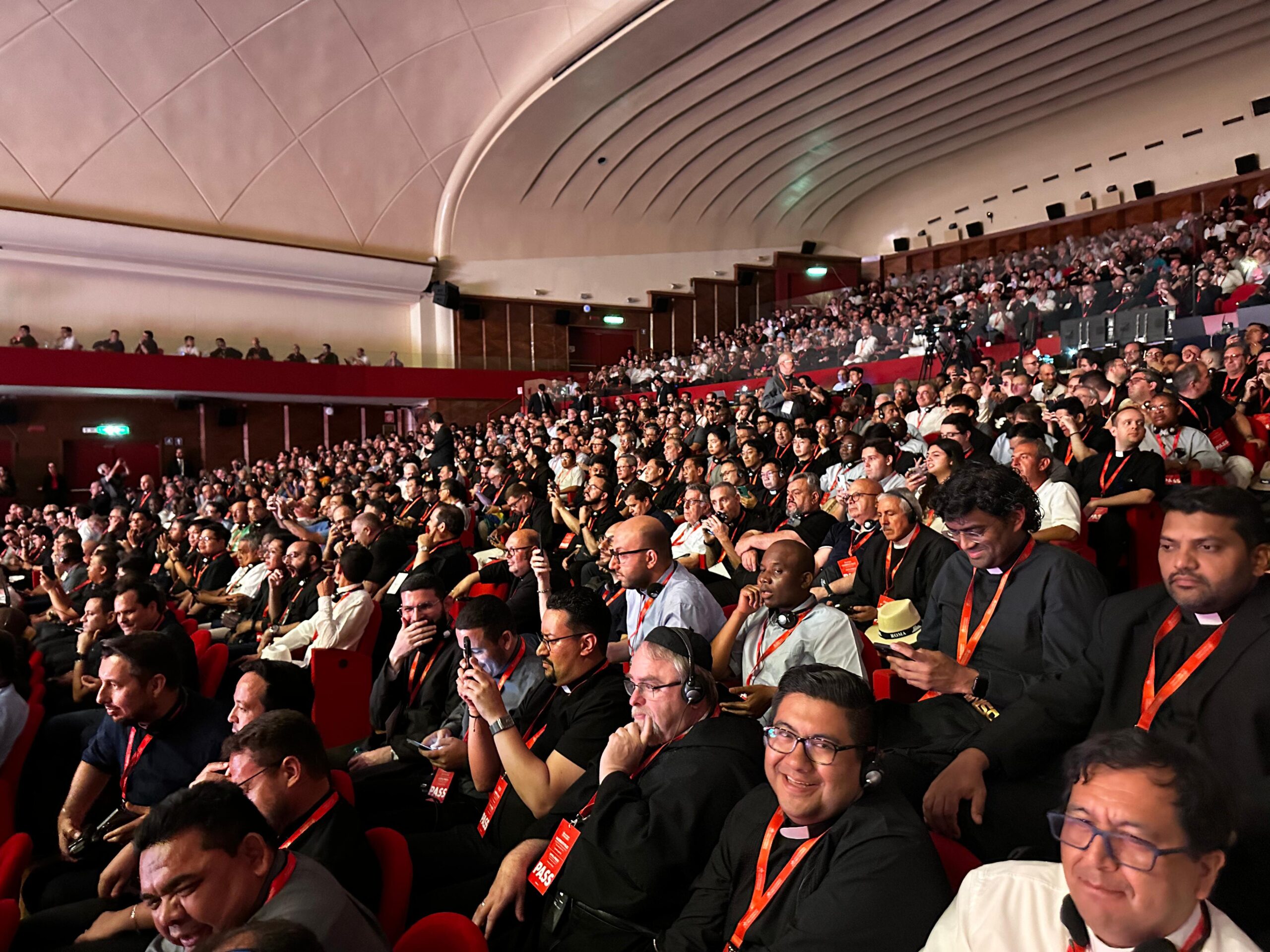 [em espanhol] Para concluir, proponhamos um momento de oração. [em italiano] Um momento muito breve, porém o que eu disse antes nas palavras, o quanto é importante! Quero sublinhar a importância da vida espiritual do sacerdote. Tantas vezes quando precisamos de ajuda, procurem um bom “acompanhador”, um diretor espiritual, um bom confessor. Ninguém aqui está sozinho. E mesmo que esteja trabalhando na missão mais distante, nunca está sozinho! Procurem viver o que o Papa Francisco tantas vezes chamava de “proximidade”: proximidade com o Senhor, proximidade com o vosso Bispo, ou Superior religioso, e proximidade também entre vocês, porque vocês realmente devem ser amigos, irmãos; viver esta belíssima experiência de caminhar juntos sabendo que somos chamados a ser discípulos do Senhor. Temos uma grande missão e todos juntos podemos fazê-lo. Contamos sempre com a graça de Deus, a proximidade também da minha parte, e juntos podemos ser verdadeiramente esta voz no mundo. Obrigado!