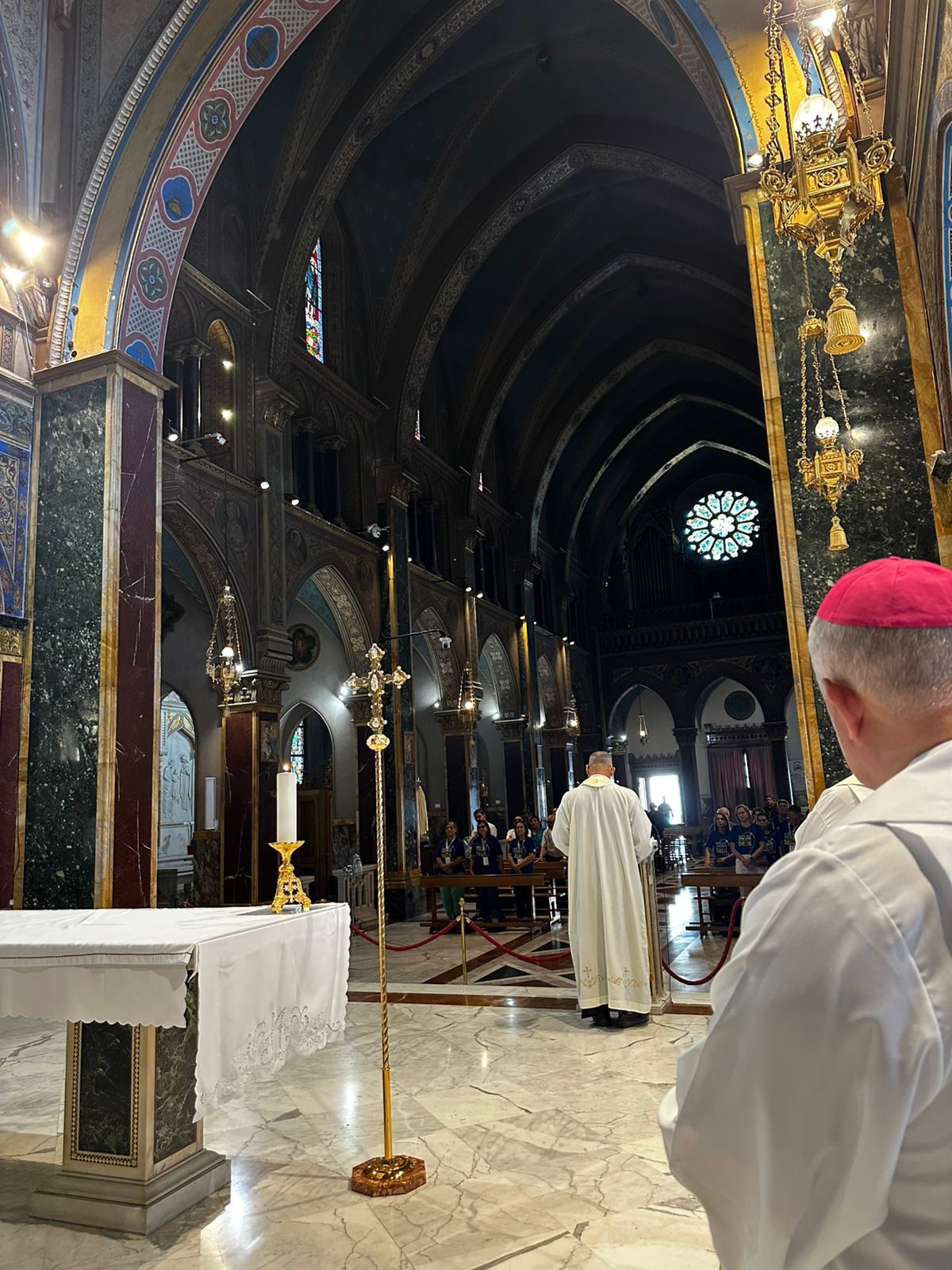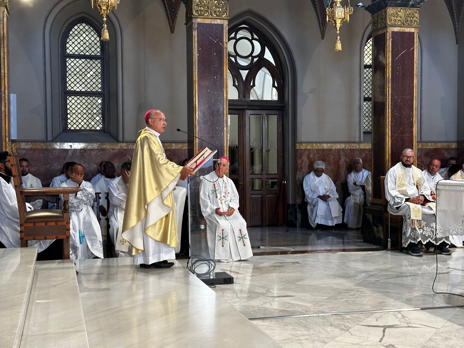 “Comecemos com o Sinal da Cruz, porque estamos todos aqui porque Cristo, que morreu e ressuscitou, nos deu a vida e nos chamou para servir. Em nome do Pai, do Filho e do Espírito Santo. A paz esteja convosco!