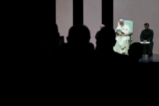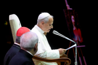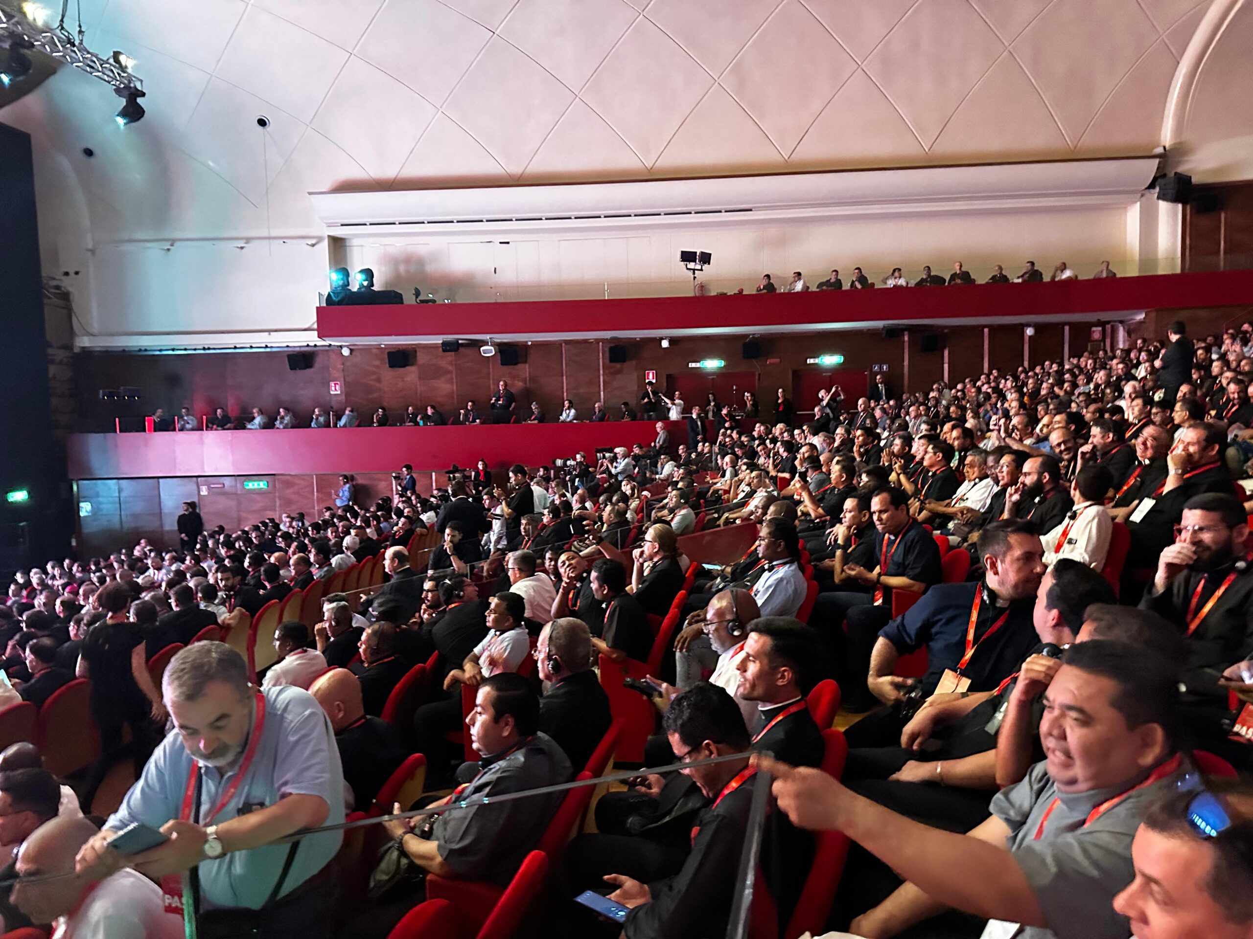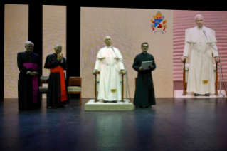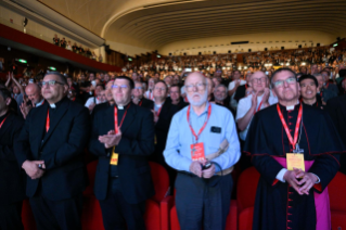 [em espanhol] Para concluir, proponhamos um momento de oração. [em italiano] Um momento muito breve, porém o que eu disse antes nas palavras, o quanto é importante! Quero sublinhar a importância da vida espiritual do sacerdote. Tantas vezes quando precisamos de ajuda, procurem um bom “acompanhador”, um diretor espiritual, um bom confessor. Ninguém aqui está sozinho. E mesmo que esteja trabalhando na missão mais distante, nunca está sozinho! Procurem viver o que o Papa Francisco tantas vezes chamava de “proximidade”: proximidade com o Senhor, proximidade com o vosso Bispo, ou Superior religioso, e proximidade também entre vocês, porque vocês realmente devem ser amigos, irmãos; viver esta belíssima experiência de caminhar juntos sabendo que somos chamados a ser discípulos do Senhor. Temos uma grande missão e todos juntos podemos fazê-lo. Contamos sempre com a graça de Deus, a proximidade também da minha parte, e juntos podemos ser verdadeiramente esta voz no mundo. Obrigado!