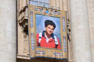 Caríssimos, os santos Pier Giorgio Frassati e Carlo Acutis são um convite dirigido a todos nós, sobretudo aos jovens, a não desperdiçar a vida, mas a orientá-la para o alto e a fazer dela uma obra-prima. Encorajam-nos com as suas palavras: “Não eu, mas Deus”, dizia Carlo. E Pier Giorgio: “Se tiveres Deus por centro de cada tua ação, então chegarás até ao fim”. Esta é a fórmula simples, mas vencedora, da sua santidade. E é também o testemunho que somos chamados a seguir, para saborear a vida até ao fundo e ir ao encontro do Senhor na festa do Céu.”